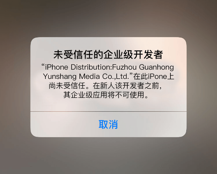 1、安装完成后,点击「078」,会出现下图所示的提示。(注:企业版App需要用户手动信任)